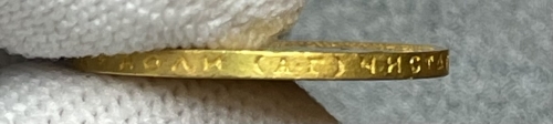В центре профильный портрет влево императора Николая II. Слева от портрета надпись «Б.М. НИКОЛАЙ II ИМПЕРАТОРЪ», справа - «И САМОДЕРЖЕЦЪ ВСЕРОСС.». По окружности канта имеются рельефные элементы, выполненные в виде зубцов.