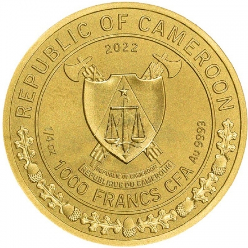 Золотая монета "Вепрь", 1000 франков, Камерун, 2022 г., 1/4 Oz, 7,78 г.